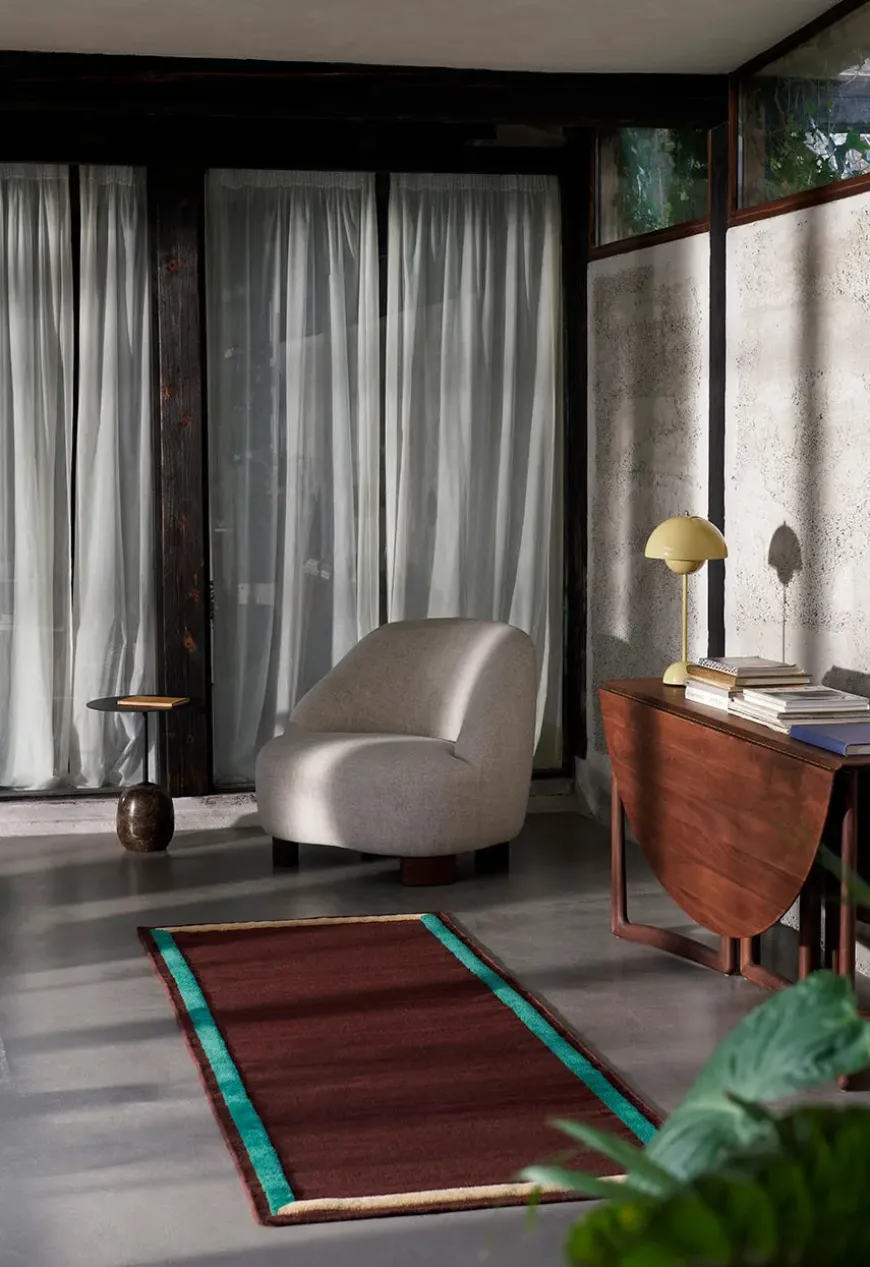 Framed tæppet er lavet af 100 % newzealandsk uld og giver rummet et snert af farver, uden at overdøve rummet.
