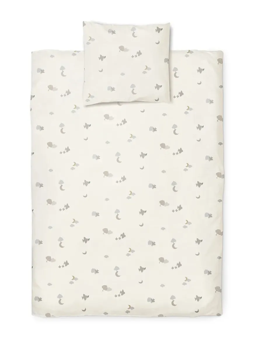 Det bløde junior sengetøj fra Moonboon er fremstillet af økologisk GOTS-certificeret bomuld, hvilket gør det både skånsomt og holdbart. Sengetøjet fås i tre søde og eventyrlige mønstre, som er inspireret af H.C. Andersens eventyr “Ole Lukøje”.