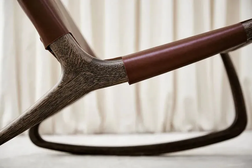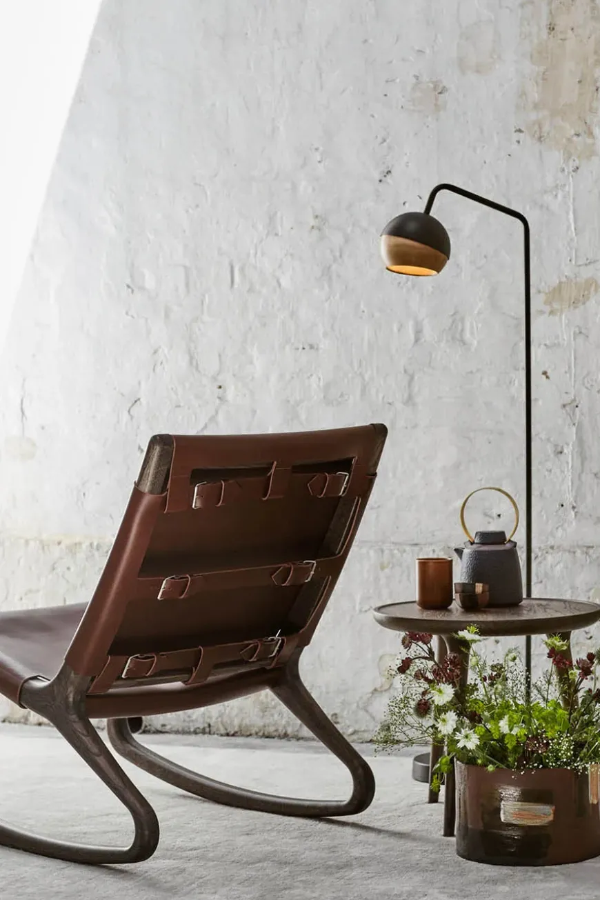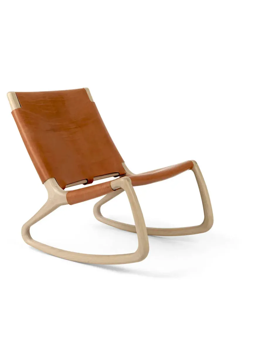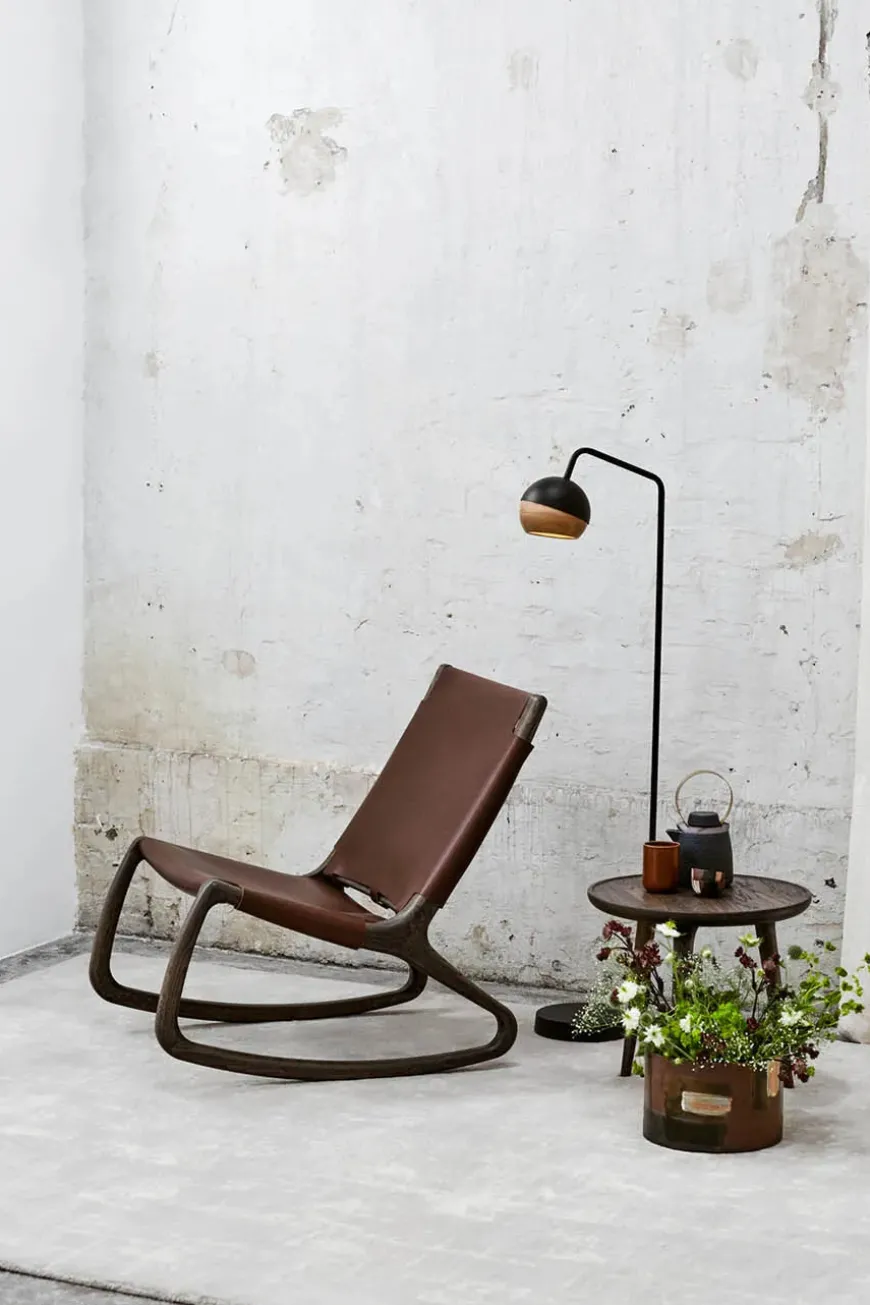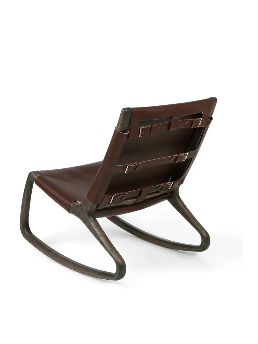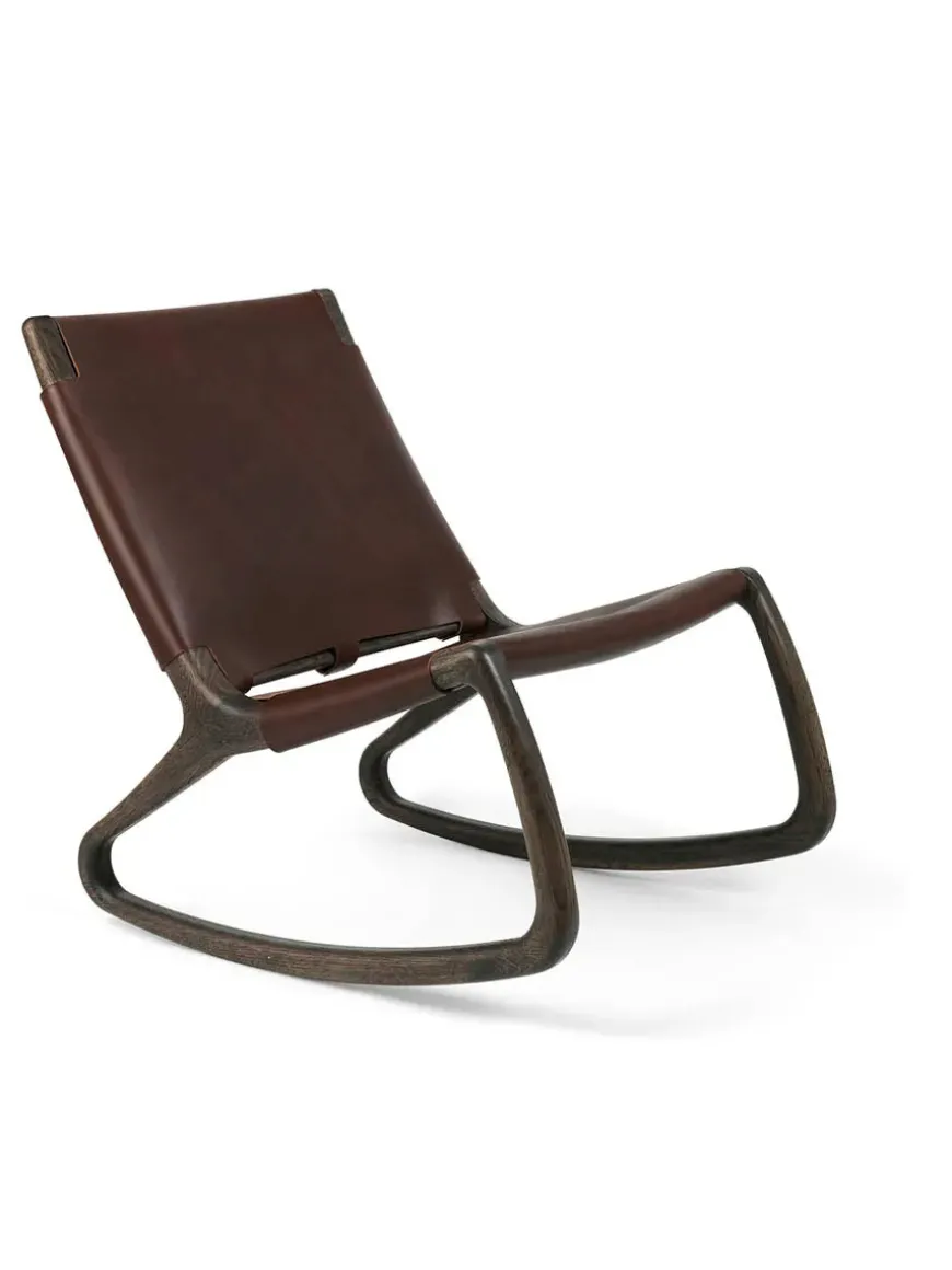 Rocker gyngestol, grå eg med mustang farvet læder fra Mater