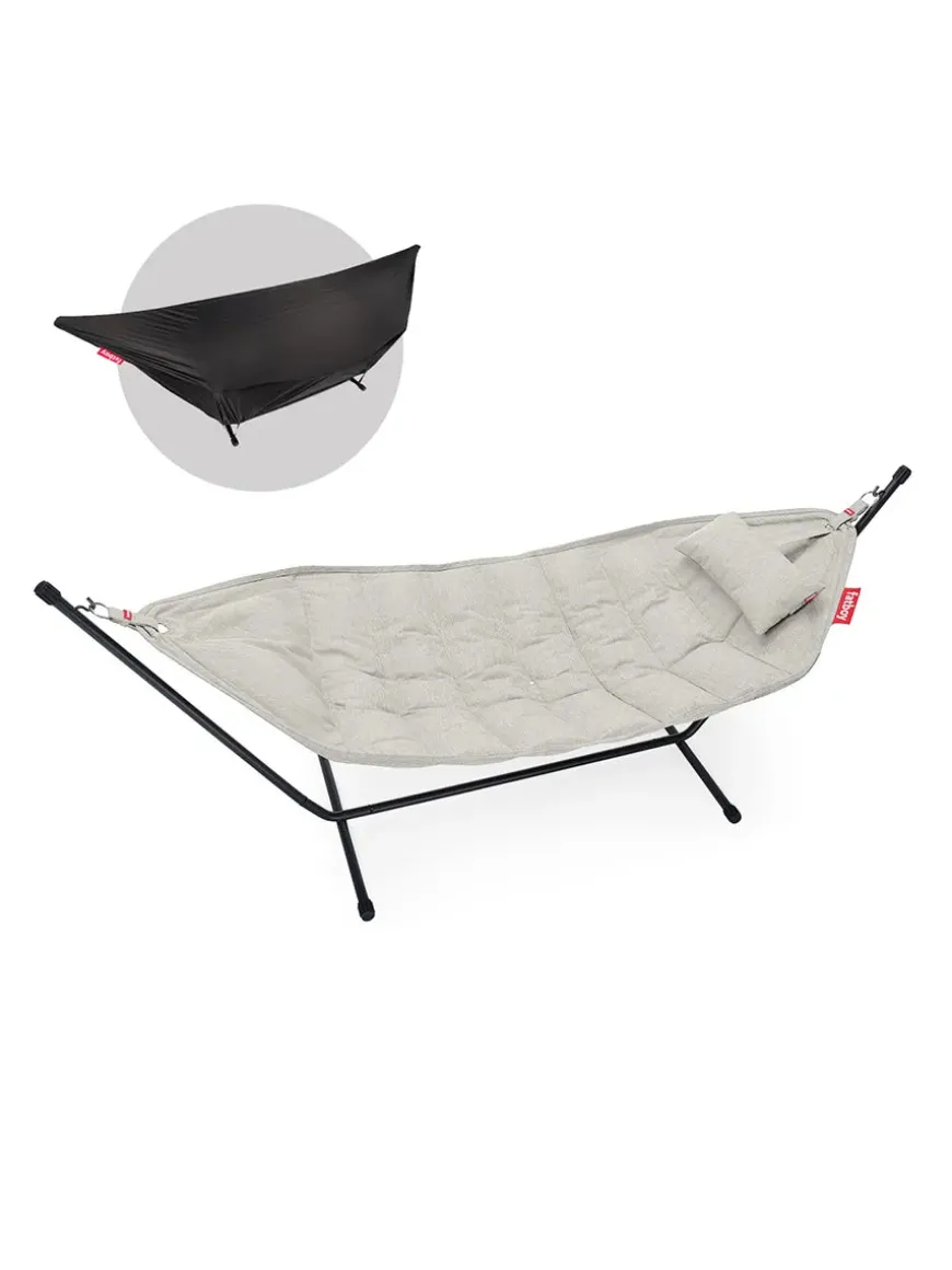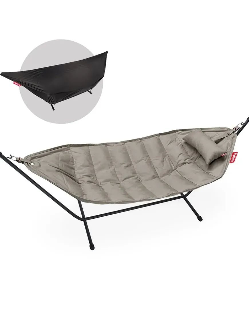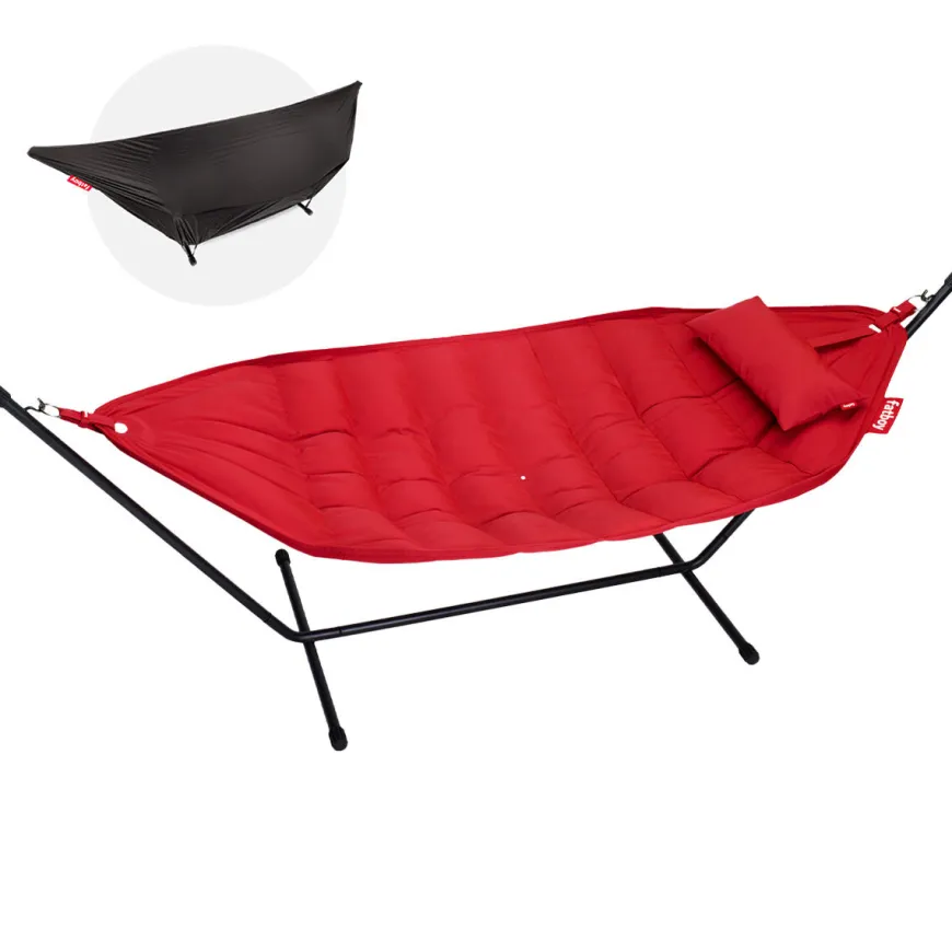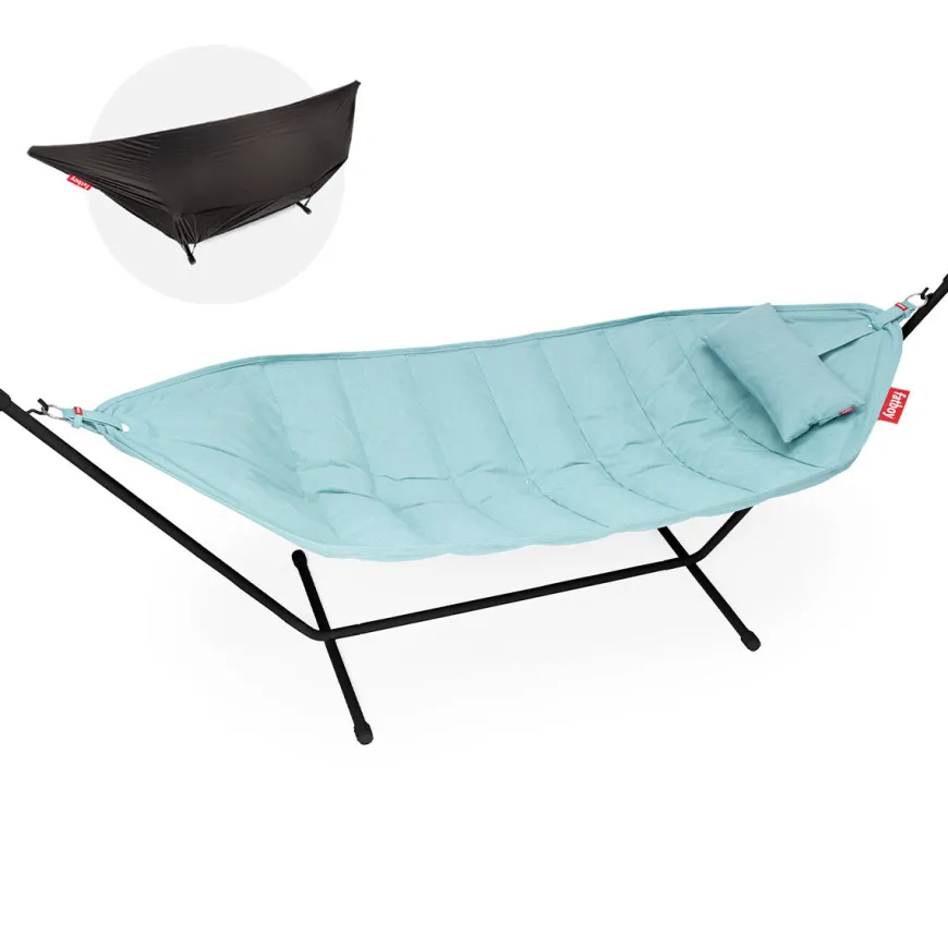 Drøm dig væk i luksuriøs afslapning med Headdemock Superb Deluxe – en hængekøje, der forener komfort, kvalitet og stil i ét komplet sæt. Uanset om du vil gynge blidt i din have, på terrassen eller endda indendørs, får du med dette sæt fuld frihed til at vælge placering uden at være afhængig af træer eller vægge. Den dobbelte konstruktion, med matchende pude og cover, sørger for at både komfort og vedligehold holdes i topklasse.