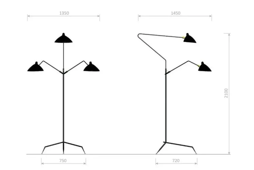 Standing Lamp w/3 Heads/Arms af Serge Mouille