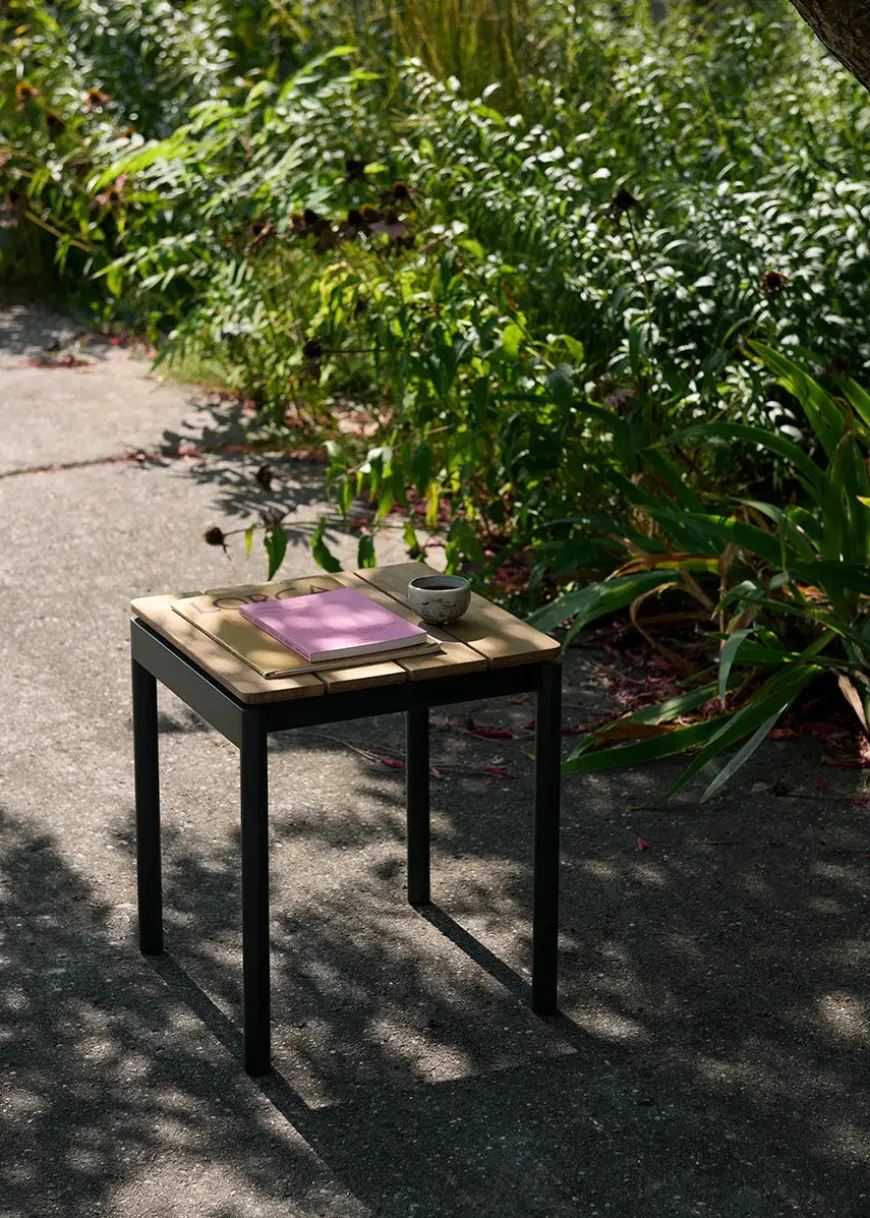 Materiale: Teaktræ, pulverlakeret stål